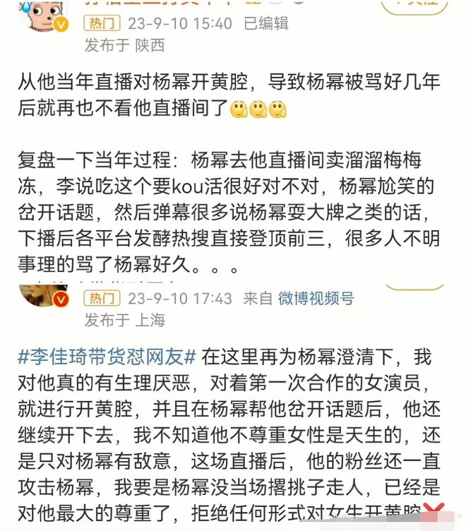 还有人给李佳琦洗的角度着实令人咂舌,说男生开黄腔正常啊,是杨幂职业素养不佳,连这点小小的事都处理不了,就是说,男生是什么高贵的身份吗?开黄腔这种不礼貌的行为放在男生身上就是不值一提,必须原谅了吗?