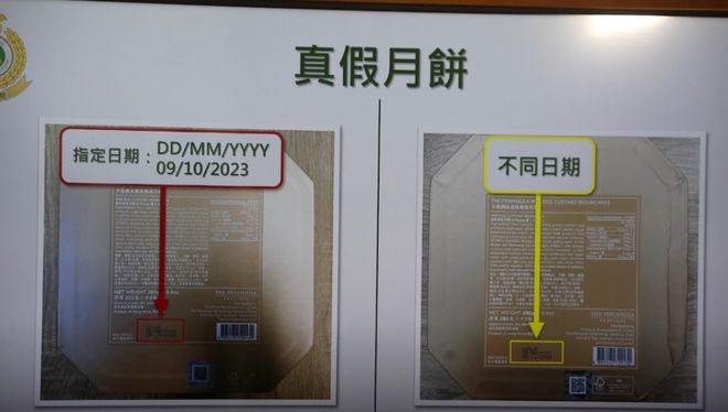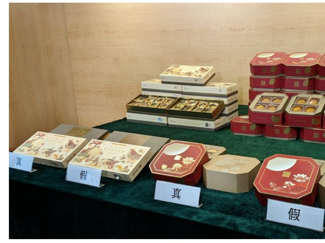 检获的冒牌月饼为「美心流心奶黄2023」和「半岛酒店迷你奶黄月饼」,以正货的七至九成价格销售,主要抄袭正货包装盒外观设计及註册商标。