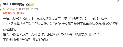 省流:张和JPEX早已终止合作,JPEX行为与张无关,吃瓜群众可以散了