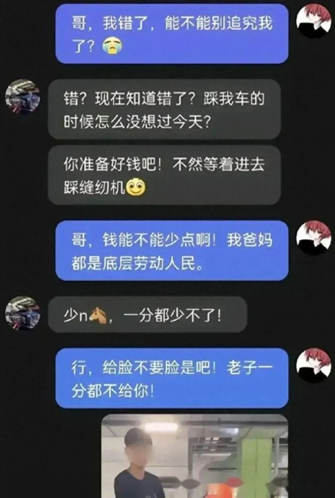 眼见王先生来真的,和网上的近乎一边倒的评论,踩车小伙这才开始认怂,但怂又怂不到底,硬又硬不起来,显得非常外强中干: