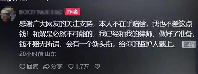 "对方仗着自己未成年,非常嚣张地在我的评论区里跳来跳去。我的立场永远不会改变,我不想和解。”