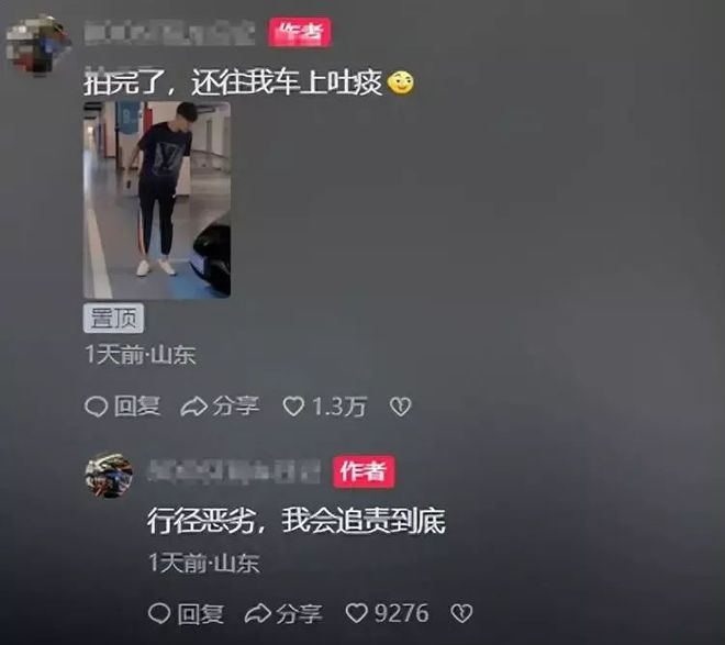 据说,拍这个视频的时候,踩车小伙还不时地比划着一些手势并大声叫嚷着“我就是牛逼”,“你们看我多帅”等台词。等到拍摄完成后,他先朝车上吐了痰,这才洋洋得意地离开。