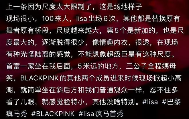 然而Lisa显然很满意这次表演,无论台前还是幕后,或者是表演完后热情地和粉丝打招呼,都能看出来她心情不错,显然将这种事当作一种享受,甚至还带着几分骄傲,也能理解,毕竟这姐想进欧美想疯了,而这次表演不仅LV三公子,很多欧美圈的大佬都来看她了,她觉得自己进入欧美指日可待了。