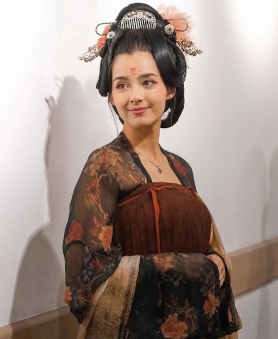 照片中的她以古装造型示人,就连发型发饰明显有悉心打扮。她侧身望向镜头,展现精致的五官轮廓与恬静温婉的一面,且双手卷在上身衣服,摆出了标准的请安姿势,相当认真!