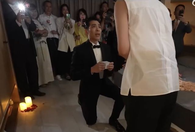 随后,萧敬腾深情告白,称呼50岁女友为“mama”,说:“这16年来,我们偷偷地相爱,就连身边最好的朋友、最亲的家人,都没有听过我们一句证实。现在开始,我要让全世界知道,mama,你从来就不是一个人,我要替你分担你的辛苦,希望这一天没有让你等太久。mama,你辛苦了,你为了我受了好多委屈,我要弥补,大家看不到我对你的爱,从今天开始,我要用力、用我一生去爱你,mama,你愿意嫁给我吗?”随后萧敬腾下跪求婚。
