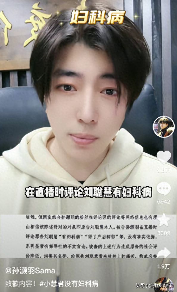 小慧君胜诉翻盘?孙灏羽出视频道歉,反复强调:她真的没有妇科病