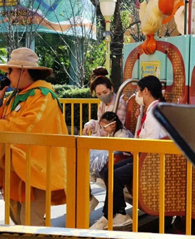 郭碧婷在游乐园带娃被偶遇 打扮随性简约低调