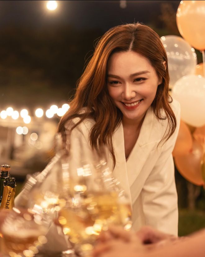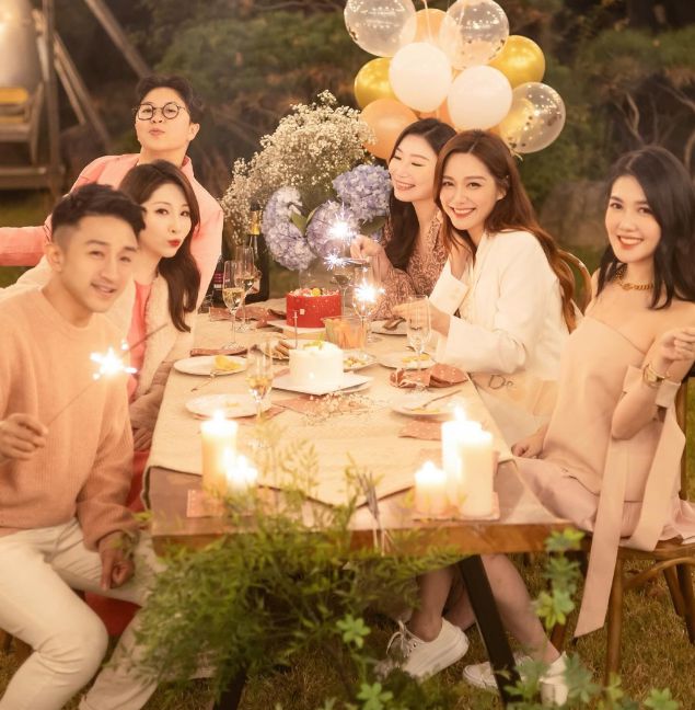 照片可见,这次姊妹团以圈外好友为主,而胞妹汤乐瑶(Cassandre)亦在其中,而身穿白色西装的汤洛雯大晒美腿,甜美的笑容洋溢幸福!