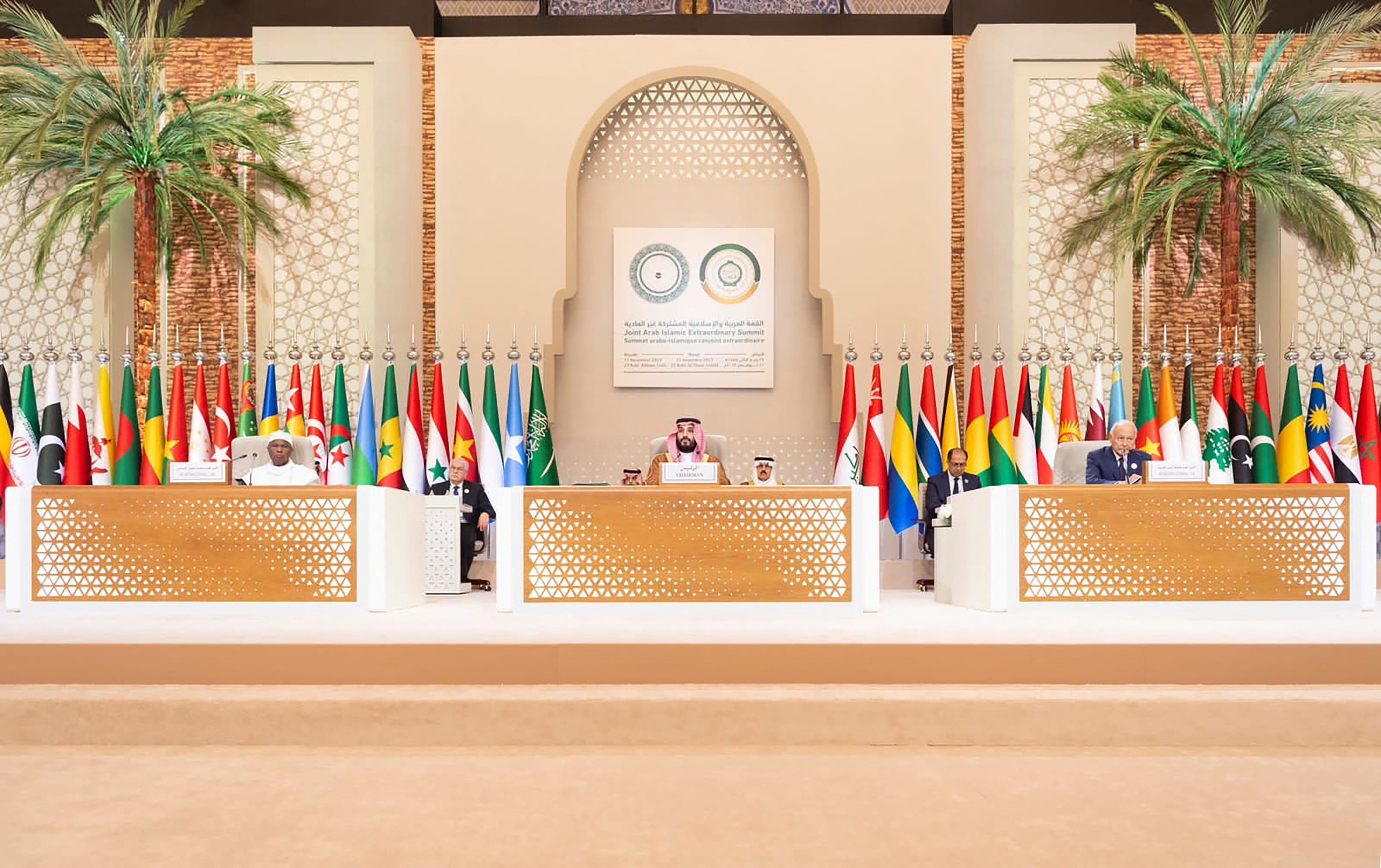 11月11日,阿拉伯-伊斯兰国家领导人联合特别峰会在沙特阿拉伯首都利雅得举行,与会的57国谴责以色列在加沙的“战争罪行”,一致呼吁立即停火。