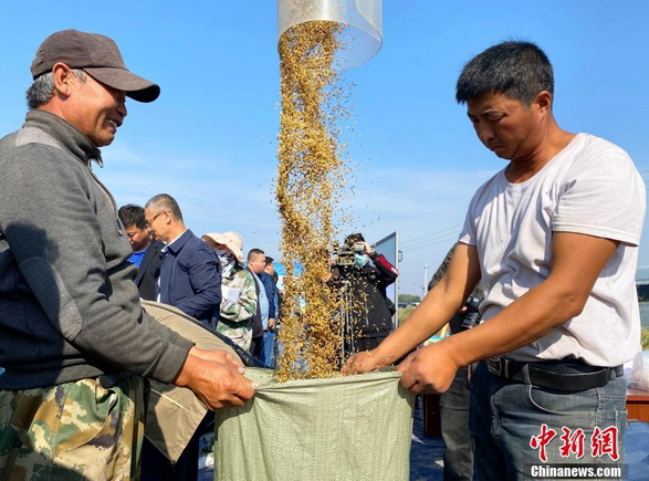 ——此次兴安盟2.8462亩的试验田取样采割稻谷鲜重1860.25公斤,按照农业部测产标准去除杂质和水分含量之后,折合干重为1601.86公斤,平均亩产533.95公斤!