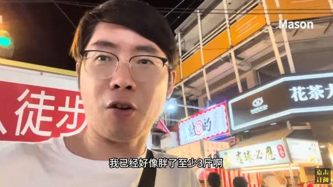 Mason在个人频道「Mason sgk环球遨游」分享到处旅游的影片,近期他来台湾游玩,有一支影片他特别介绍知名的台中逢甲夜市,美食相当多元,Mason边吃边抱怨,才来四、五天,就已经胖了至少三斤。
