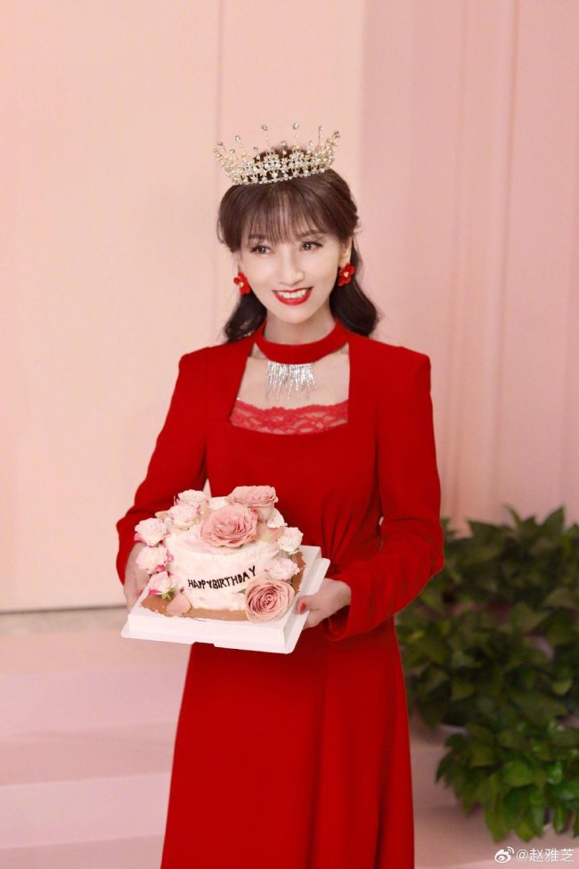赵雅芝晒70岁生日照 穿红色长裙戴皇冠状态惊艳