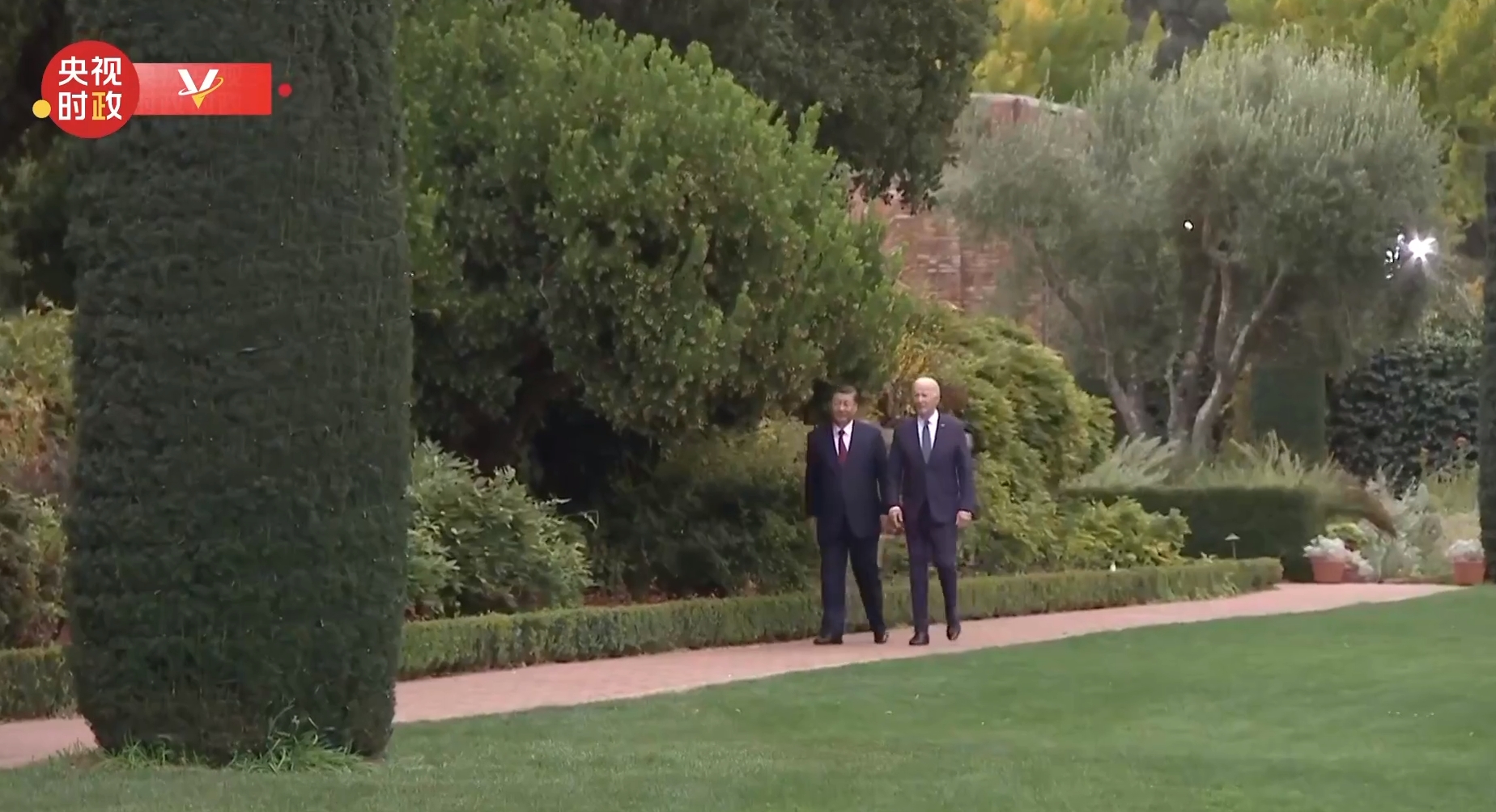 中美领导人散步交谈 视频截图
