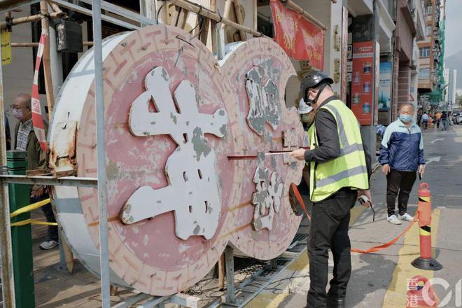 据统计,全港大街小巷遍布12万个霓虹招牌。虽然霓虹招牌是夜间特色,但不少已经是跨年代的存在了,存在严重破损、结构不稳松动等问题,随时能成杀人武器。