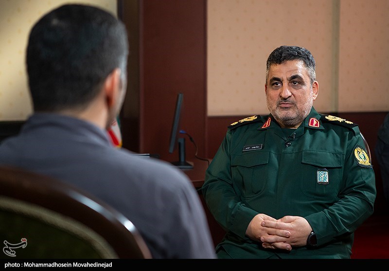 正在接受采访的伊朗国防和武装部队后勤部副部长赛义德·迈赫迪·法尔希革命卫队准将 图片来源:塔斯尼姆通讯社