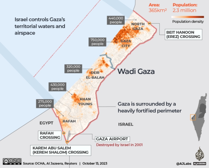 加沙是位于以色列和埃及之间的一片狭长地带,目前有230万巴勒斯坦人居住。自哈马斯2007年6月通过武力从巴勒斯坦民族解放运动(法塔赫)手中夺取加沙地带控制权后,以色列封锁加沙地带,把那里变成“世界最大的露天监狱”。