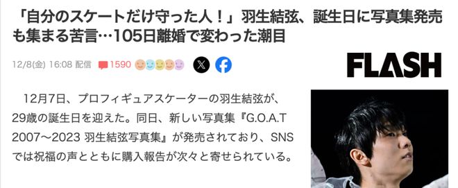 另外,在上周(7日)迎来羽生结弦29岁生日,他惯例在社群网站发文,感谢各界的祝福,并表示“到了29岁这一年会继续努力,呈现给大家最棒的演出。”果然是不会再提私人感情等外界十分关注的离婚等私事。