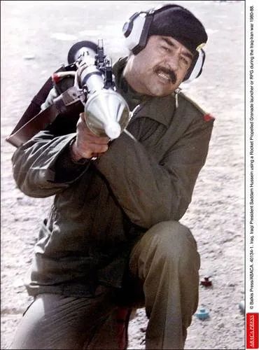 随后他又处理了一批「前朝遗老」,有人估计,多达500人遭到处决。在肃清了反对声音、掌握绝对权力后,萨达姆在伊拉克的威望空前集中,野心开始膨胀。他不再满足于仅仅当伊拉克的主人,他想和当初的埃及国父一样,做阿拉伯世界的真正王者。正如他曾经说的:「我不关心现在人们怎么评价我,我关心的是500年后的人们怎么评价我。」在萨达姆当上总统的同一年,伊朗爆发宗教革命,持续2000余年的巴列维王朝被推翻后,由霍梅尼担任新生国家的最高领袖。刚经历革命的伊朗,局势不太平,军队也被整编得乱七八糟,关键一点是,霍梅尼一上台就推行强硬外交政策,把整个西方世界都给得罪了。萨达姆认为,如果趁这个机会进攻伊朗,一来可以把国内矛盾转移出去,巩固新生政权,二来可以实现海湾霸主的野望。