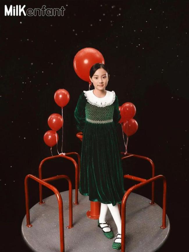 画面中的甜馨穿着红色的连衣裙,脚踩着黑色的小皮鞋,一头乌黑柔顺的长发披肩,气质也显得特别的优雅迷人。而从小就面对着镜头的她,更是显得十分的自然,每个动作也都很有星范,赢得了大家的称赞。