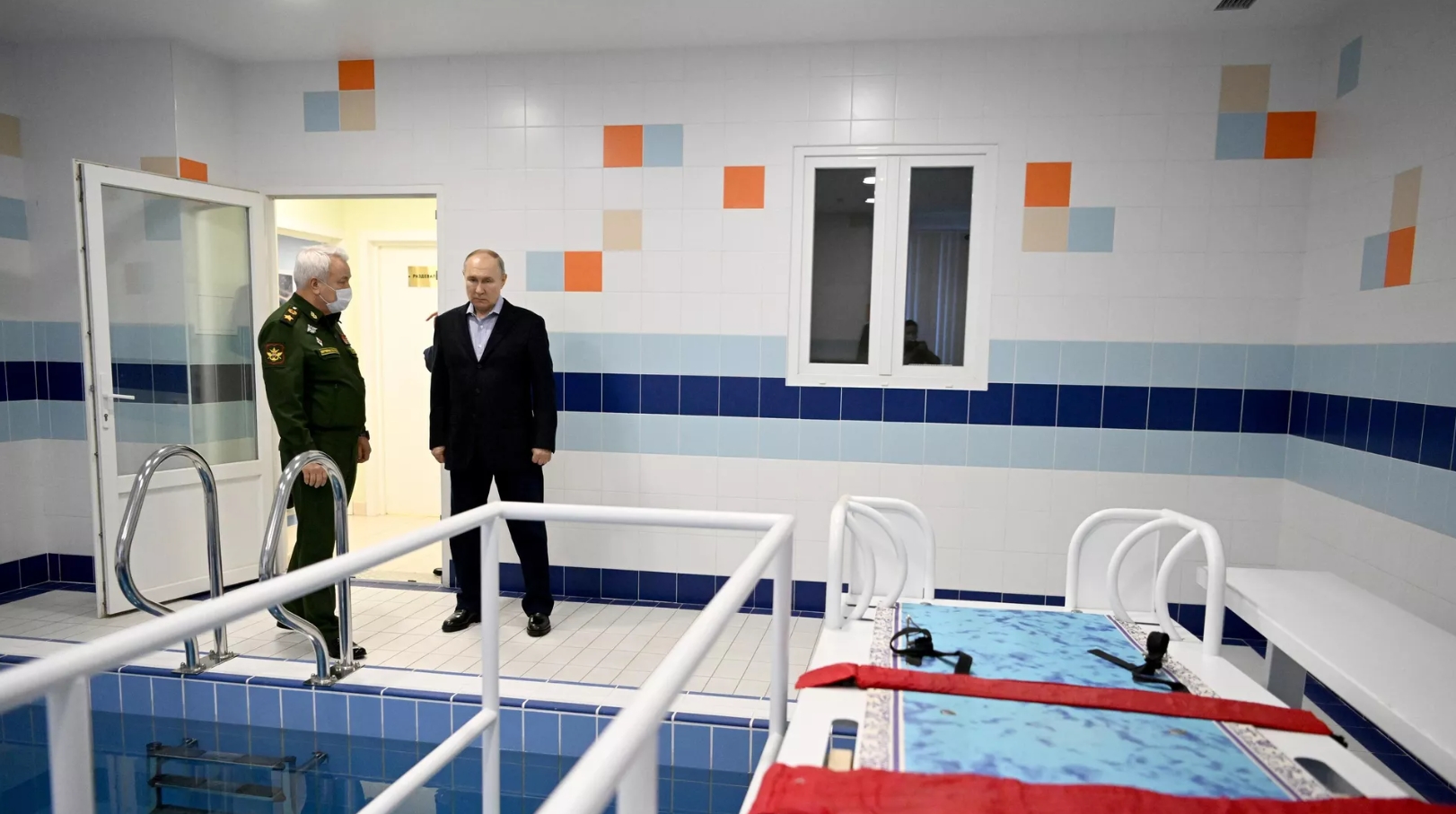 当地时间2024年1月1日,俄罗斯莫斯科,俄罗斯总统普京在视察维什涅夫斯基中央军事临床医院(图源:俄罗斯卫星通讯社)
