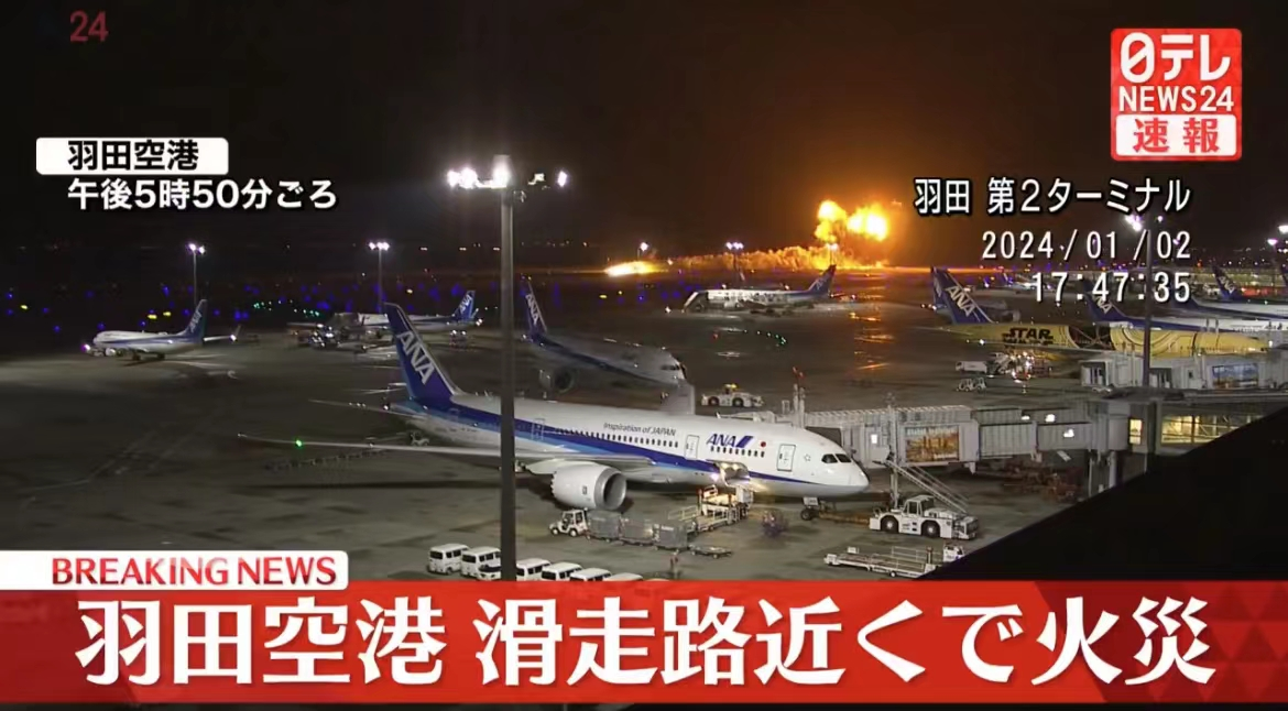 在1月1日,日本能登地区发生了7.6级地震,这是日本地区自2011年“3·11”大地震后最大的地震。而次日下午5点47分,日本东京羽田机场又发生了一起重大事故,日本海上保安厅执行救灾任务的dash8飞机与日航516航班在跑道上发生撞击,造成两架飞机完全损毁。
