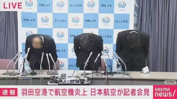 事故发生后,国土交通省的官员发扬“躬匠精神”,在记者会上鞠躬道歉
