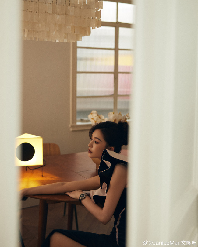 文咏珊的一组美照曝光,她盘发穿黑色丝绒开衩长裙,露出香肩美腿,妆容精致干练,气质优雅迷人。