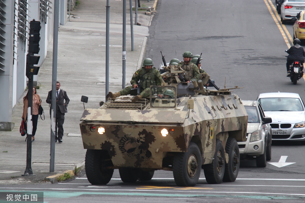 1月9日,厄瓜多尔安全部队的装甲车在首都基多街头巡逻 图源:视觉中国