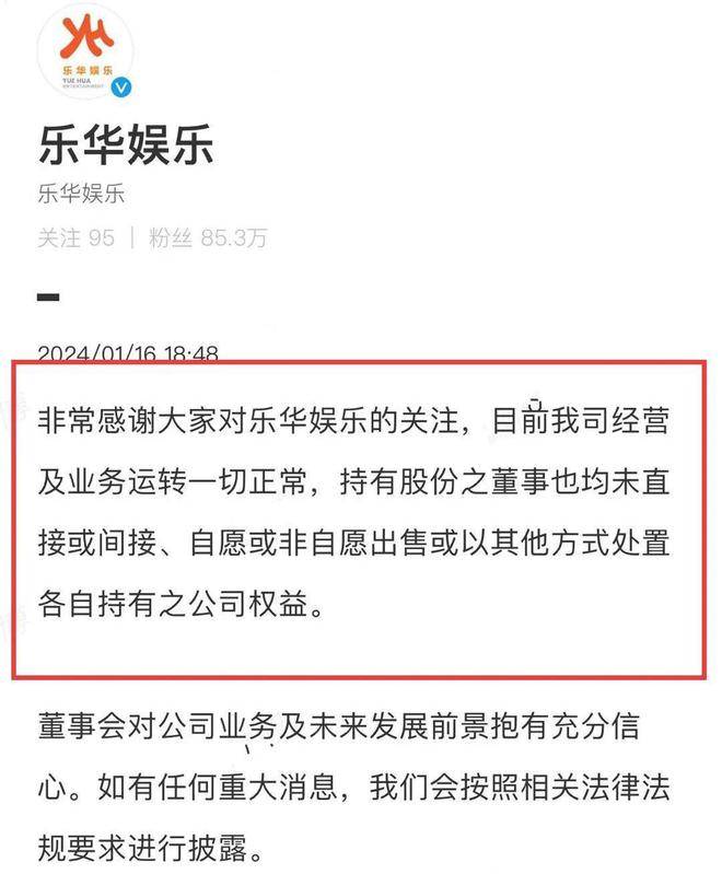 不过乐华很快辟谣了相关流言,表示公司股价下滑,只是因为业务减少,目前公司经营一切正常,让大家不要胡乱猜测。