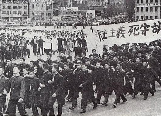 1960年4月19日,韩国反对李承晚的抗议者前往警察局。
