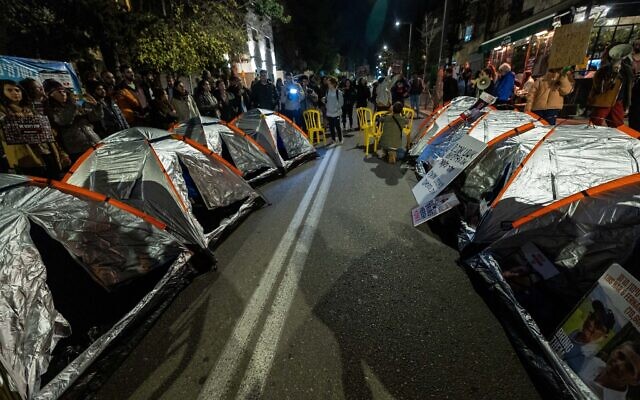 在内塔尼亚胡表态后,多名人质家属在内塔尼亚胡位于西耶路撒冷的私人住宅前搭起了帐篷,以示抗议。人质家属发言人表示,抗议者将一直待在帐篷里,直到“总理同意一项解救人质的协议”。
