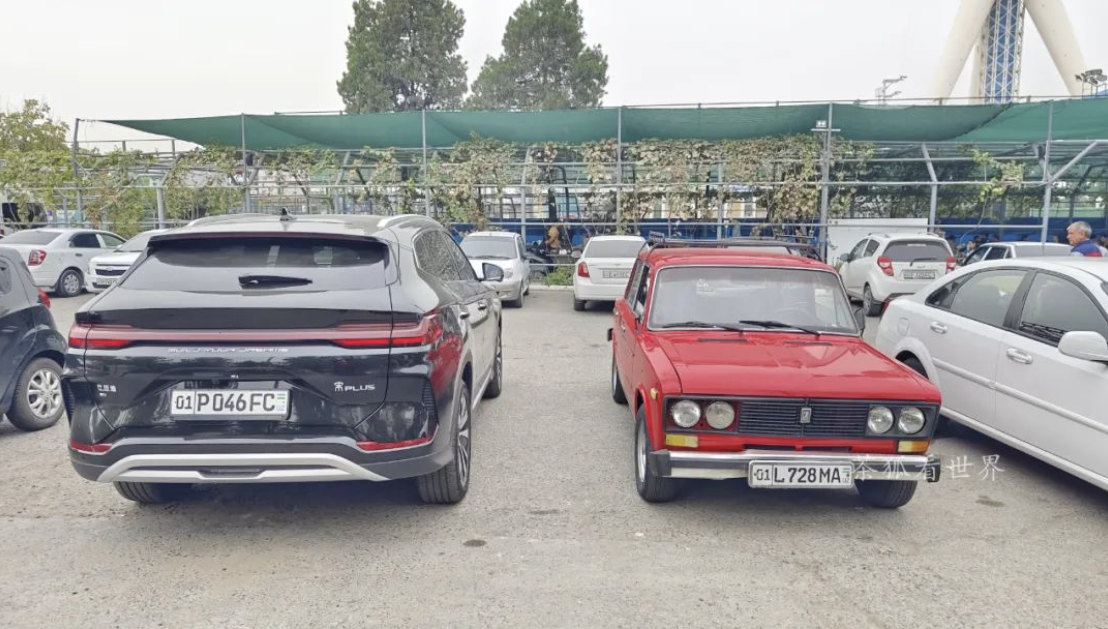在乌兹别克斯坦的首都塔什干,我拍下一张非常经典的照片,照片的左侧,是一辆比亚迪宋plus,代表着未来,右侧是一两老掉牙的俄罗斯拉达轿车,代表着过去。
