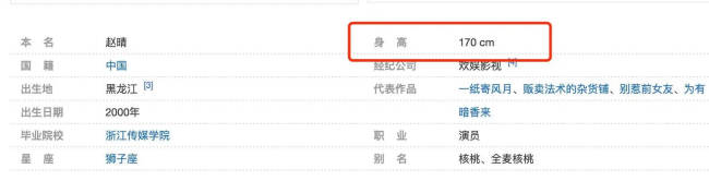据悉,演员赵晴于2000年出生,身高170cm,毕业于浙江传媒学院,系欢娱影视旗下艺人。