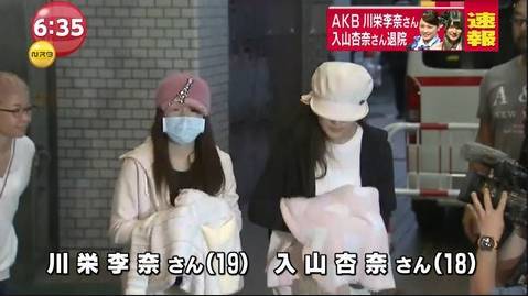 当时19岁的川荣李奈右手大拇指被划破并骨折,当时18岁的入山杏奈右手小指被划破并骨折,此外头部也被划破,另有一名男性工作人员受伤。