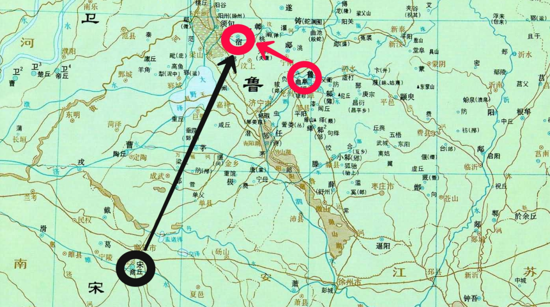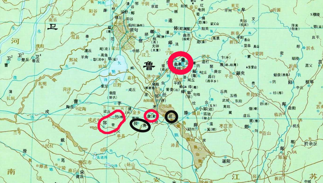 在这样的背景下,公元前714年,郑国和宋国重新爆发战争的时候,鲁隐公坚决站在郑国一边,并亲自统帅兵马和郑、齐两国伐宋。鲁隐公不是不愿意出兵参战吗,为什么突然改变立场了?因为这次出兵讨伐的是宋国,费伯的三座城池就在鲁宋交界处。一旦成功,鲁隐公就能得到军功,获取巨大的声望,回到曲阜便能顺利推行改革,落实藏僖伯的正确建议,甚至可以利用战争的有利时机,构建起针对费伯的战略优势,为铲除地方割据势力奠定基础。“隐公十年春王正月,公会齐侯、郑伯于中丘,盟于邓,为师期。六月戊申,公会齐侯、郑伯于老桃。壬戌,公败宋师于菅。庚午,郑师入郜。辛未,归于我。庚辰,郑师入防。辛巳,归于我。”公元前713年正月,鲁隐公和齐、郑两国会盟,约定正式出兵的日期。六月,战争正式爆发。鲁隐公亲自统兵向鲁西南进发,在菅城大败宋国。郑庄公陆续攻破郜城和防城,随后又交给鲁隐公接防。郜城和防城在鲁宋交界处,离郑国非常遥远,郑庄公为什么要跋涉千里,进攻这两座城池?鲁隐公要借助郑国的兵力,扎根鲁西南,郑庄公帮助鲁国完成战略目标,来换取鲁国的支持。于是在战争结束后,鲁国的西南边疆就成了这样——