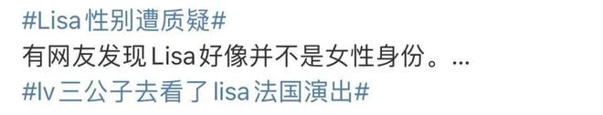 其实吧,Lisa究竟是男是女还真不好说,本来以为LV三公子的口味,应该不至于那么重,但是自从萝莉岛事件后,这种事就很难评了,不过可以肯定的是,Lisa当初去泡菜国出道前,签约公司的时候,身体特征肯定是女性,毕竟泡菜国的爱豆行业卷生卷死,挑选标准也是十分严苛,不会出这种纰漏的。