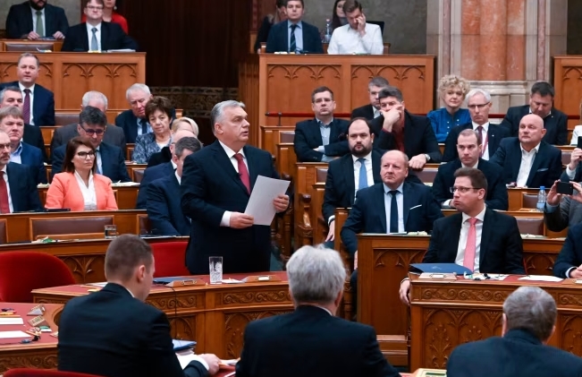 欧尔班在匈牙利议会上就乌克兰申请加入欧盟一事发表讲话/《金融时报》