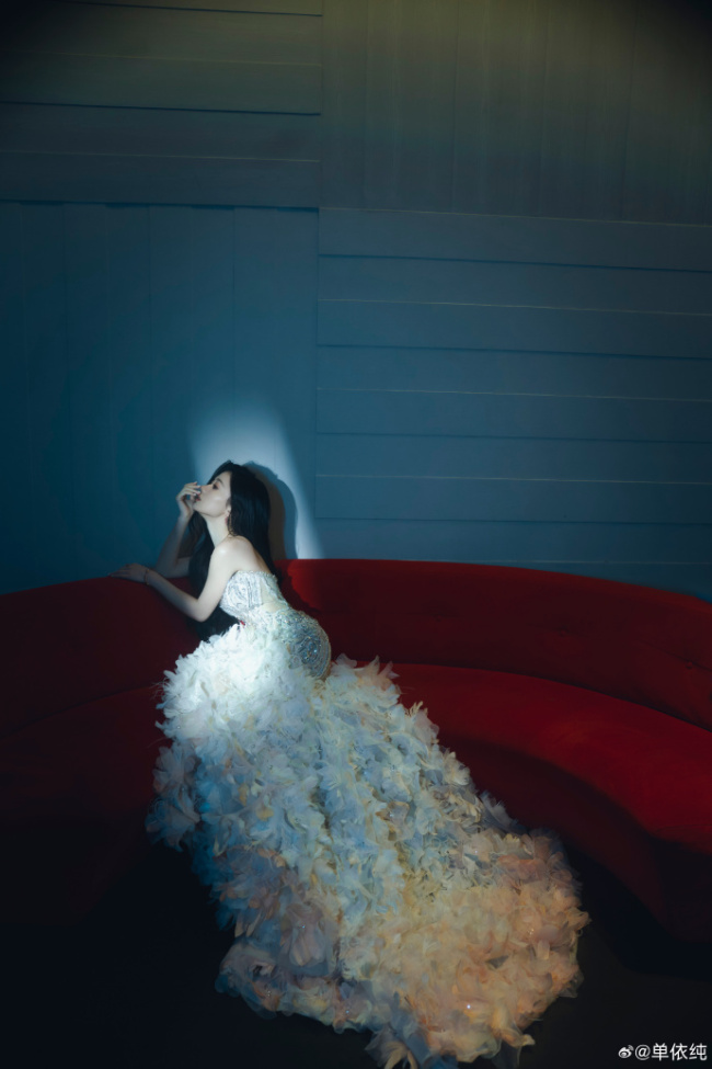 单依纯羽毛长裙造型 温婉大气似在逃公主