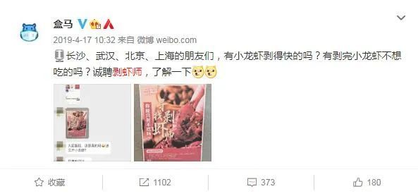 据了解,盒马招聘剥虾师的初衷是因为很多消费者反馈吃小龙虾会把手弄脏,也没办法玩手机,甚至吃一顿小龙虾,一直到第二天手上还都是小龙虾的味道。因此,盒马讨论了剥虾师的可行性,最终推出剥虾服务。