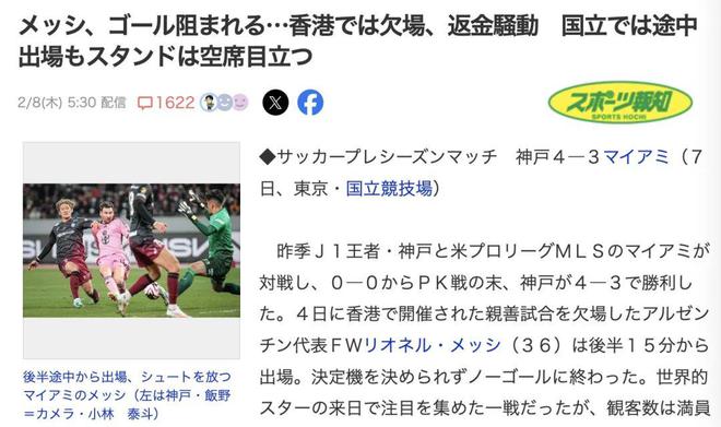 对此有去现场的日本网友称:我去看了这场比赛,不出所料,梅西的发挥令人惊叹。球星们都在那里,包括梅西、苏亚雷斯和布斯克茨。然而,由于物价如此之高,一般家庭很难花这么多钱。门票每人4万日元,如果和家人一起去的话,这将是一笔巨大的开支。如果能以更低的价格出售,就会有很多热爱足球的家长想让自己的孩子看看足球是怎么踢的。
