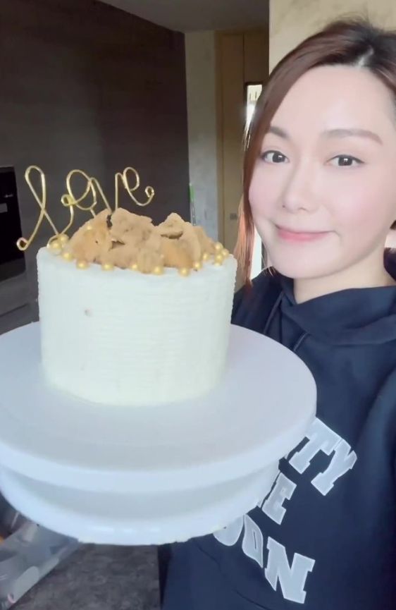 汤洛雯表示已经好久没整过蛋糕,所以这次就特别炮制,为老公送上惊喜,见她整得有板有眼,还在蛋糕上插着Love的装饰,相当有心思,最后两人还甜蜜合照!