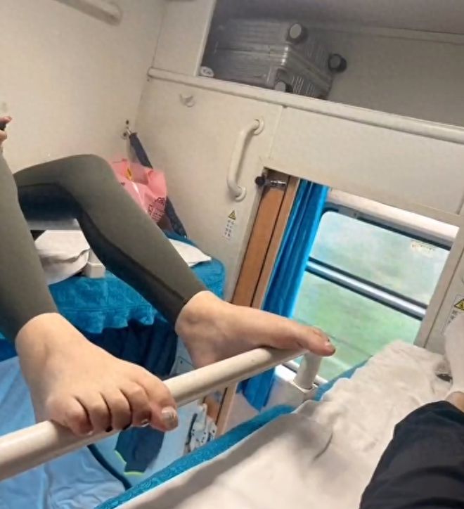 女子坐火车不注重形象,将脚伸到陌生男子床上,吓得男子拍照自保