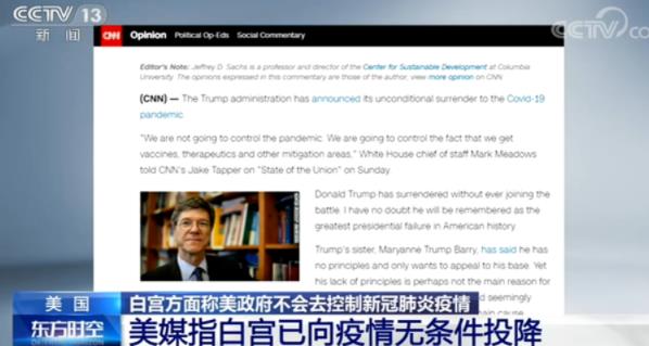 10月25日,美国白宫办公厅主任马克·梅多斯在接受美国有线电视新闻网采访时表示,美国政府不会去控制新冠肺炎疫情。