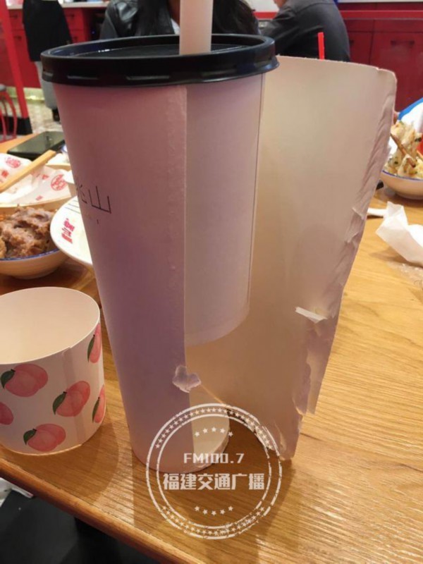 “前脚刚看到你们推送张亮麻辣烫把肥牛卷主要原料标为鸭肉,后脚我自己就被套路了,感觉坑是无处不在的。”今天上午,1007接到车友陈女士的投诉,说自己于10月25号傍晚,在福州仓山区一处大型购物广场一家名为“伏见桃山”的网红奶茶店购买了一杯大杯奶茶,结果拆开后发现,大杯只是个“套子”,实际杯子只有大约三分之二大。