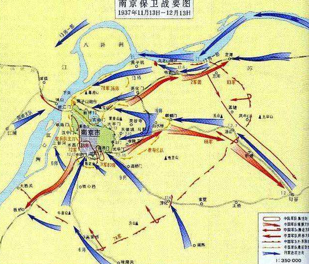 后面会聊一系列的战争,这里我公平的说,战争的胜负,士兵的数量是重要问题,但不是一切问题。南京保卫战,即使全南京老百姓也抱着必死的决心和日本人干,也打不赢,这是事实,只要头脑冷静,必须接受。当时中日装备,火力,补给上带来的差异,最好的结果是士兵交换比是1:5,国民政府要拿出150万士兵来打,当时的情况真的拿不出来。而且中央军刚打完淞沪会战,已损失惨重,还没有休整。即使让平民也上都不行,自从枪械被发明,按照二战的数据,平民和有组织军人的交换比要到20:1甚至还远远不止,要干掉30万日军,就要有600万生命填进去,南京城整个人口当时为65万;当时国民政府基本上已经接受了抗日战争一定是持久的这个基本事实,否则后期国民党也不会专程找我党给他们讲解游击战争。南京,六朝古都,所谓易守难攻,是因为有长江天险,但是现在的问题是,日本人已经拿下了上海,他们根本不需要过长江,不仅他们不需要过长江,而且长江包围了南京北面和东面,还成为了阻碍国军撤退的天险,反过来了!所以,多数人认为如果南京守卫战打不好,就会被日军包了饺子,投进去多少人丢掉多少人,把有生力量都折腾光了,以后还有什么家底和日本人拼?因为大家是从军事上的角度来说的,但是委员长是国民党的总裁,日本人打东北,反正是张学良的底盘,丢了就丢了,虽然是真的打的赢。但是现在南京是民国首府,直接一枪不放就丢了,那他蒋介石还不让人给骂死,面子上怎么搁得住啊。会议上,正在委员长焦躁不安和尴尬的时候,唐生智说话了:南京是首府所在,是总理陵寝所在,必须要守,一定要守!蒋介石大喜过望,终于有人给了个台阶,马上任命唐生智为南京保卫战的总指挥,而唐生智坚定的表示愿与南京共存亡。开会,最怕的是有人唱高调,他唐生智都说和南京共存亡,准备殉国了,大家自然不好说什么,于是草草散会。会议结束,李宗仁拍拍唐生智的肩膀:兄弟,为党国守南京,牛逼啊!这当然不是李宗仁的心里话,李宗仁想说的是:你个瘪犊子,就你还守南京?你这是要坑死所有人的节奏啊!李宗仁认为唐生智守南京必然是悲剧收场,是因为第一本来唐生智就是个墙头草,从来不坚定,就在国民政府里面,一会反蒋一会拥蒋,这样的人会共存亡?莫不是在搞笑吧。第二,他唐生智的军事履历,几乎就没打赢过仗,而且原来反对蒋介石,给穿了小鞋,远离前线,快10年没打仗了。你个瘪犊子既没意愿,也没能力,就会唱高调,你守个毛线。这个情况,蒋介石能不知道?他当然知道,但是没有人愿意守啊,总要找个人背锅。蒋介石说:请大家坚守2个月,只要2个月没问题,我带新军和云南大军来救援。淞沪会战打得非常惨烈,中央军的建制基本上已经被打残了,无法再战,最后组织的守军是:刚从上海前线撤退下来的第36师、第87师和第88师,加上从他处抽调来的10个师,总共13个师,再加上由军事学院学生组成的教导总队、宪兵部队、江宁要塞部队,满编将有18万人左右,18万人中,新兵大约是3-5万人,很多人是刚刚才摸到枪,还不会打.....德械师的战斗力有多强?师团配置了坦克,有直属的炮兵营,配置了马克沁重机枪,只要委员长别瞎指挥,虽然装备上和日本人依然有差距,但战斗力绝对不逊色与日军。淞沪会战中,第87、88师两个德械师的德制火炮,发起了令日军窒息的猛烈炮击。随后,便采用闪电战,主动向日军阵地发起猛烈攻势,重创日军,差点就攻下日本的海军陆战队总部。但,这也是中央军硕果仅存的最后一支相对完整的部队,最后一点家底了。在防线的组织上,事实上在淞沪会战前期,国民党已经明确预测到日军将会从上海进攻南京,在上海到南京的中间,修了两道坚固防线吴福线和锡澄线,这些要塞都由水泥浇筑,钢筋搭建而成,现在大家到上海和南京的郊区去玩,还能看到这些要塞,非常坚固。根据后来日本人的记录,淞沪战场近一点的如昆支线的同样的要塞不怕日军炮火轰击,给日本人带来了恐怖的回忆。但问题是,淞沪会战打得英勇,委员长指挥得一塌糊涂,尤其是在撤退的时候,直接成了溃败,四散逃命,两道拱卫南京的要塞轻易被放弃了,从头到尾一丁点作用也没发挥,白搞了!最后的结果就是日军从三路进攻南京,中路从京沪线来,南路从太湖来,北路沿长江来,所有的路线畅通无阻,如出无人之境,根本没有人安排狙击任务,桥也没拆,路也没炸,日军直接兵临城下。也就是说南京保卫战没有任何战略纵深,一开始几乎就是兵临城下,直接打守城战。虽然我们说:南京防守战是一场必输的战役。但我们今天复盘南京保卫战,是因为输也要输的有个样子啊。我军牺牲800人干掉敌军200人是失败,牺牲400人干掉200人也是失败,既然要打仗,就要好好打!就像918,我们说就算十六万人真的打不赢对面的一万多人,那好歹也要打一打,哪怕打死几百人,可结果是一枪不放直接撒丫子跑了。南京保卫战,从12月3日距离南京47.2公里的句容开始,到12月6日,已经开始进攻南京市汤山镇,日军对南京的合围已经形成。蒋介石当晚离开南京,前往武汉继续指挥全局,将南京守卫战全权托付于唐生智。同时,这个时候蒋介石仿佛已经忘记了前面军事会议上大家的提议,告诉南京守军:不惜一切代价死守!但由于外城几乎没有守备,12月7日,日军已经看到了南京的城墙。一是喝茶,二是在自己的院子里面遛弯。前线他肯定是不去的,就悠闲的呆家里和办公室里。当然,你要说