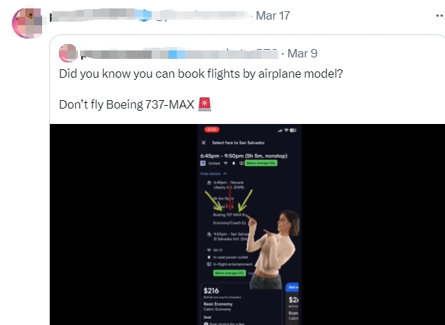 还有热心网友手把手教学:如何在订机票时避开波音737 Max。