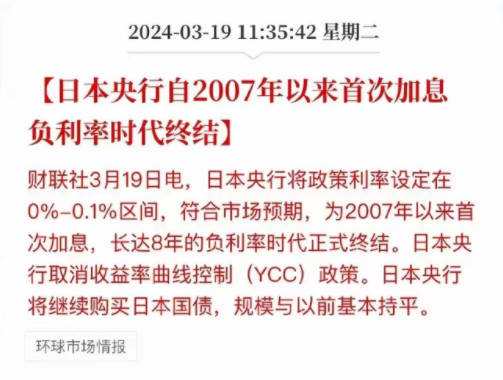 19日全球金融市场最大的新闻就是日本央行终于结束了17年的零利率(负利率),开始加息了,这一次加息的幅度很小,直接影响应该也不会太大,但是任何事情怕的就是蝴蝶效应,就怕它成为一个趋势,一个历史进程,那影响就大得去了。