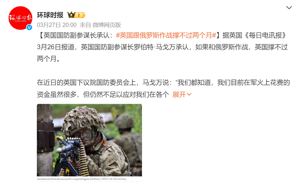 在“要不要出兵乌克兰”的问题上,法国由“鸽派”彻底转变为了“鹰派”。援引法国军方的说法:如果乌克兰前线崩溃,法国军队可能与俄罗斯军队直接作战,并说出了五种可能。三,派兵布置防空系统,但若击落俄方导弹,则会直接卷入冲突;四,在乌建立防御区,也就是部署军队,这意味着迈过参战门槛;然而,就在马克龙底气十足之际,英国直接给了法国当头一棒。3月26日,英国国防副参谋长罗伯特·马戈万,在国会辩论时坦言:“如果与俄罗斯作战,英国撑不过2个月”,他认为虽然英国的军费支出居高不下,但这并不足以让英国面对每个领域的威胁。那么问题来了,在法国底气十足、马克龙不断对普京撂狠话的当下,好歹同样也是五大善人的大英帝国,为什么要主动认怂?自视甚高的英国,还能夸上俄罗斯了?首先,对英国来说,其与俄罗斯之间的关系,即便没有俄乌冲突,也好不到哪去,在制裁俄罗斯的时候,英国丝毫没留情面,而在挑衅俄罗斯这件事上,也是使出了浑身解数。俄乌冲突爆发后,美国率先在整个西方国家中发起了援助乌克兰的号召,英国为了响应号召、做好“榜样”,援乌的第一批主战坦克,是英国的“挑战者”-2坦克,第一批远程导弹,是英国的“风暴之影”巡航导弹,连白磷弹这种变态的致命武器,英国也是带头,说给就给了。况且,英国位于欧洲大陆的最西端,中间还隔着一个英吉利海峡,俄罗斯想打到英国,得先踏平乌克兰、干掉波兰、逼着德国、法国举白旗,之后才能横渡英吉利海峡去打英国。乌克兰都已经撑了两年多,所以,英国军方这些人,是怎么得出“英国撑不过2个月”这个结论的?说白了,其实这个结论的中心思想只有两个字:“要钱”!这一点,马戈万说的很清楚:我们需要增加弹药和装备的储备,需要在所谓“综合防空导弹防御项目”上投入更多资金,这不是找口“要钱”,是什么?2024年,美国的国防预算高达8860亿美元,约占全球军费总额的40%,这个数字刷新了美国国防开支纪录,另外日本、韩国以及法、德、波兰等不少北约国家都选择了增加军费预算,不愿屈居人下的大英帝国,当然也会蠢蠢欲动。年初,英国陆军总参谋长帕特里克·桑德斯,便跳出来阴阳英国政府,英国军队人数30年内减少了一半,如果英国仅仅依靠从1960年实施的募兵制募兵,即使到2025年,也仅有7.25万经过训练的士兵,人少就算了,军费预算也是紧张地很,真与俄罗斯打起仗来,估计得英国平民自己准备武器作战。现在,机会又来了,不是为乌克兰快扛不住了吗,不是法国要开始派人了吗,那英国军方就先把话放出了给议会听听:“如果苏纳克政府不增加军费,一旦选择与俄罗斯开战,那估计英国撑不了多久”。可问题是,自苏纳克政府上台以来,英国各种罢工就轮番登场,从边检人员,到护士、教师和司机,重要行业的人员基本都抗议一遍了,大罢工把英国政府都搅个底朝天。这个鬼样子的财政,去哪里给军队搞钱?缩减开支缩没减到军费头上你就谢天谢地吧!况且,英国派不派人、参不参战,估计自己说了不算,作为美国的忠实迷弟,无论是伊拉克战争,阿富汗战争,还是现在的俄乌冲突,不都得看美国脸色行事?但眼下问题的关键在于,不等到11月,特朗普和拜登谁输谁赢,大局未定啊。如果拜登上台,那对俄强硬这个面子还得继续撑下去,因为输给俄罗斯对于美国来说,是不能承受的。而要是特朗普上台,这大嘴巴早就多次放话,只要他入主白宫,当天就会让俄乌战争中止,那现在还打个毛线?所以啊,英国仍在随风摇摆,而俄罗斯就是一块“板砖”,哪里需要就往哪里搬。