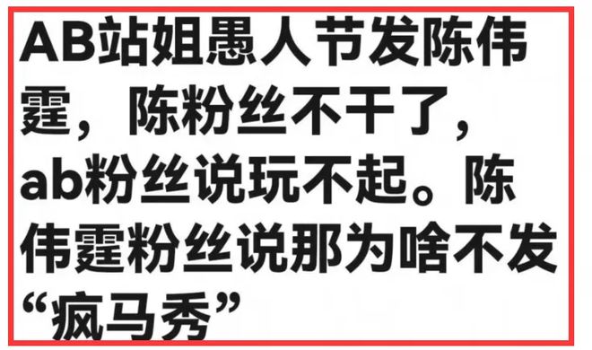 Angelababy杨颖粉丝自然有自己的一套言论,觉得愚人节大家都在团建,怎么别人家都可以一笑了之,陈伟霆的粉丝就上纲上线,真的是玩不起。