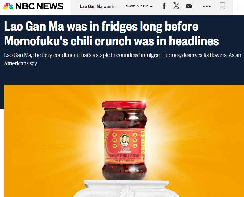 1 2 下一页 余下全文“早在福桃的油辣椒成为头条新闻的很多年前,老干妈就在人们的冰箱里了。”美国全国广播公司(NBC)4月12日以此为题发文称,随着人们对福桃的做法感到不满,老干妈在美国又火了一把。